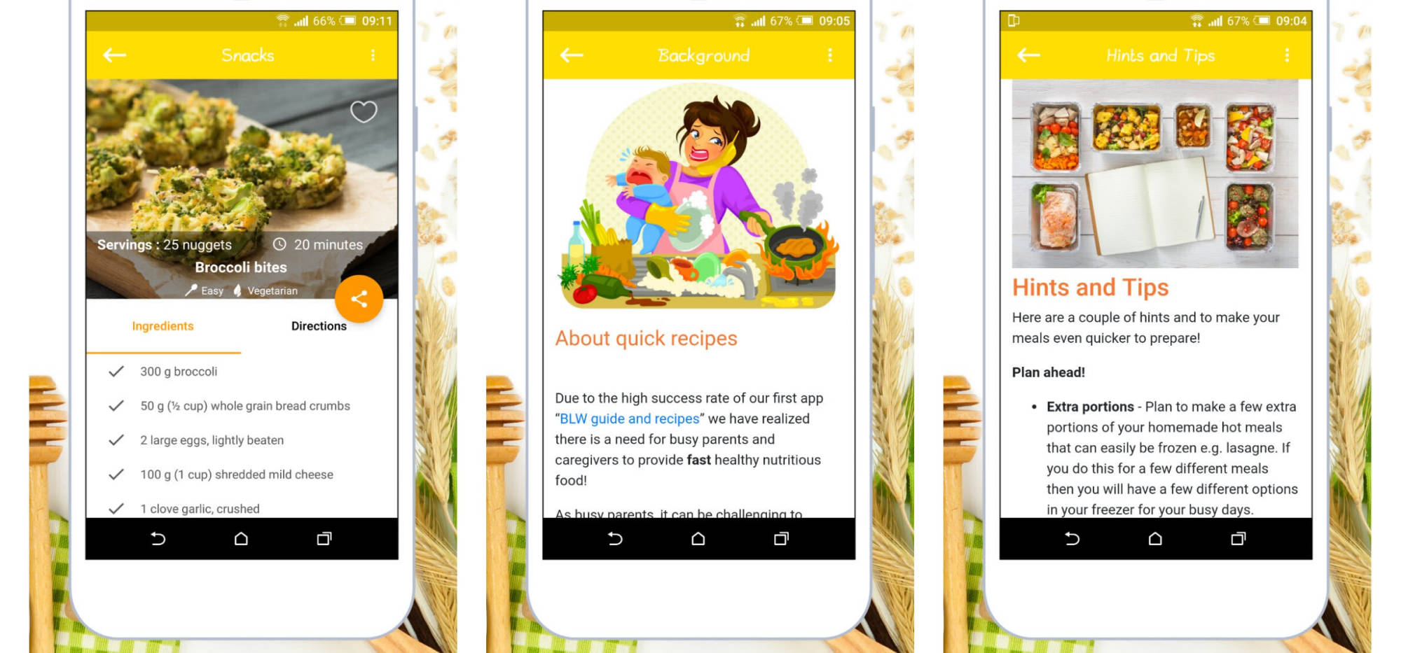 You can find all the recipes in our "Baby Led Weaning - Quick Recipes" App, available in Google Play and App Store.